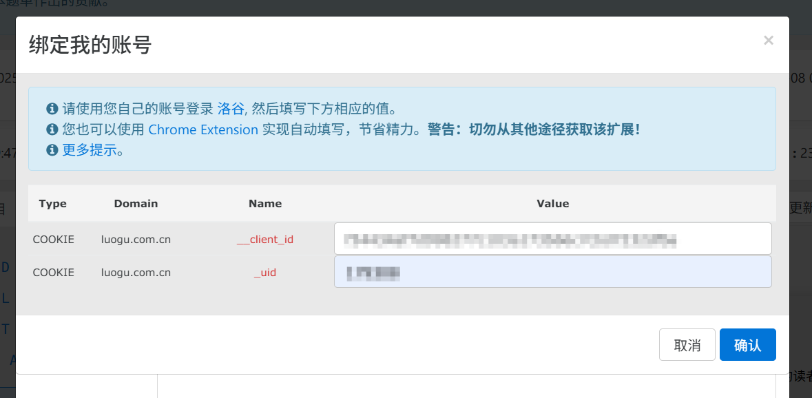 2025.09.16 二编:VJudge 支持使用扩展插件获取第三方平台账号,下面两个视频分别是官方教程和 LS学姐 录制的教程。如果照着这两个视频还不能正常提交代码再看下面的步骤。